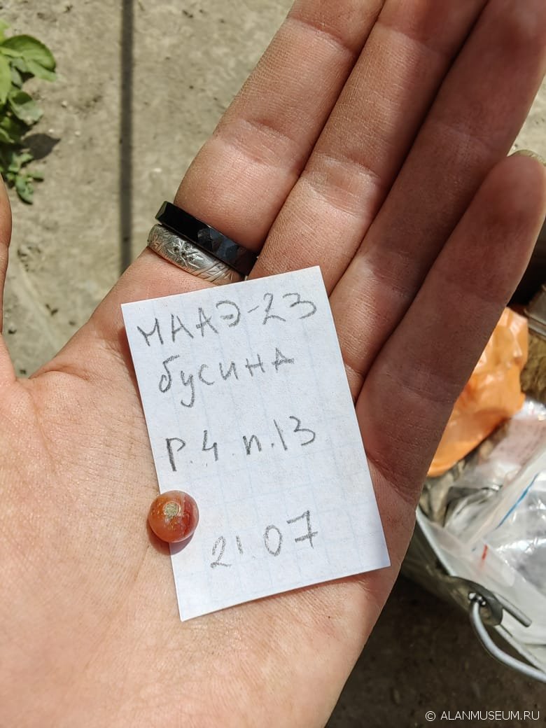Началась фрагментарная фотограмметрия каменных ящиков с погребениями на раскопе у монашеской пристройки Среднего храма. Продолжается зачистка ящиков на текущем участке. В одном из погребений была найдена бусина из красного камня. На раскопе у Северного храма продолжается зачистка фундамента постройки неопределенного назначения, среди каменных завалов были найдены фрагменты костей животных и керамики.
