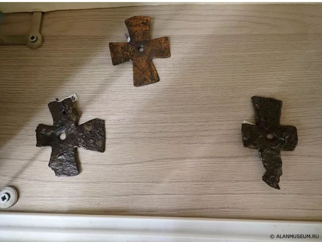 ✝️Крещение алан и распространение христианства привели к появлению на Северном Кавказе главного символа христианской религии – креста. В качестве предметов личного благочестия здесь распространяются кресты-энколпионы византийского провинциального и древнерусского происхождения, простые кресты-тельники, квадрифолии. При этом в аланской среде возникают подражательные и имитационные типы крестов, изготовленные по завезенным образцам и встречающиеся исключительно на Северном Кавказе и близлежащих территориях.